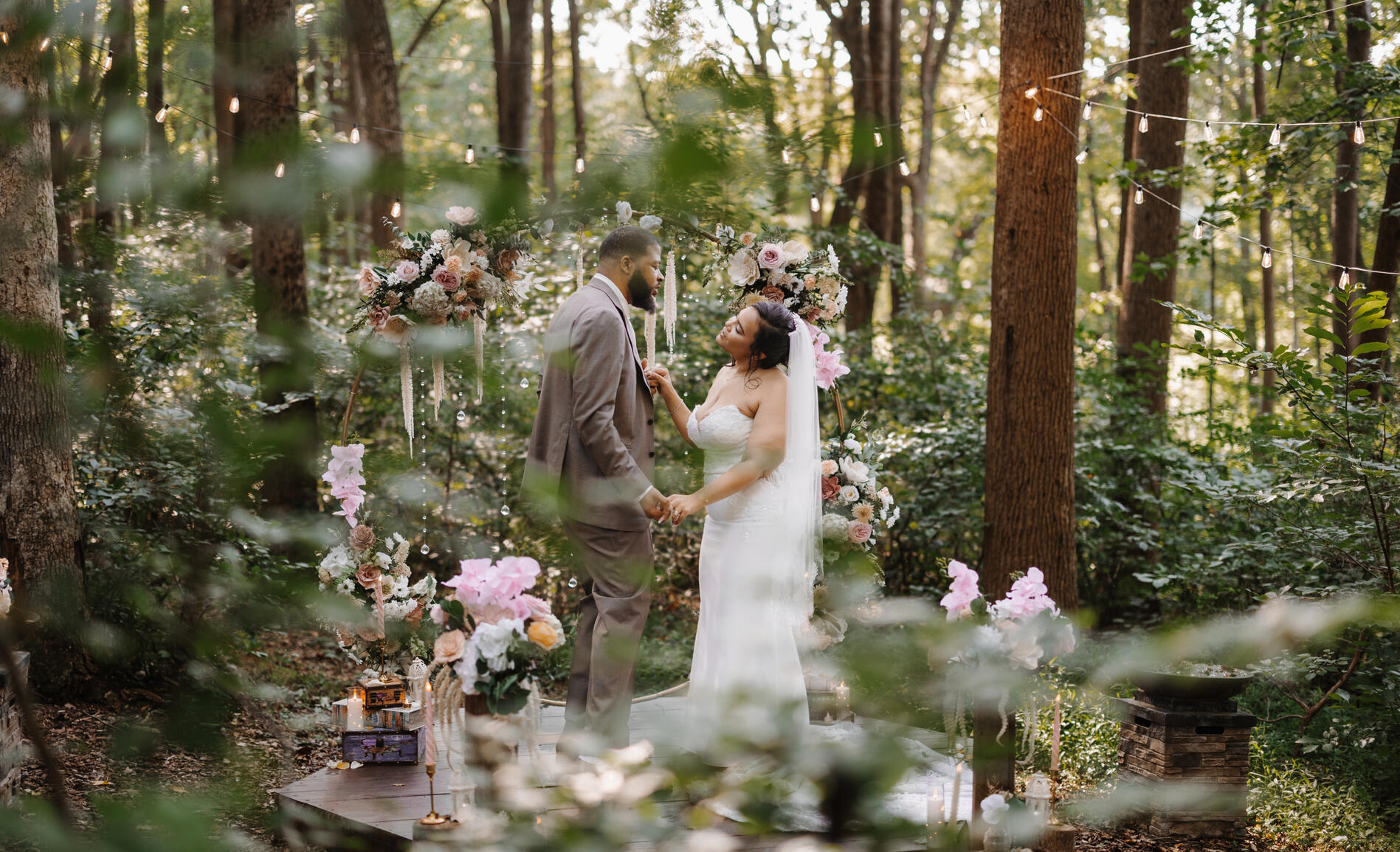 Private backyard or Forest intimate ferry-tale ceremony in the secret woods