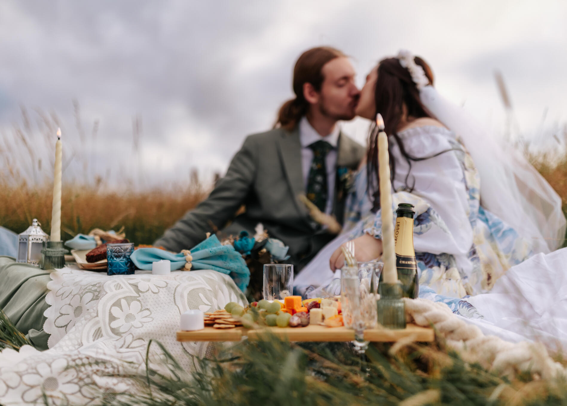 Champagne + picnic set-up or custom cake